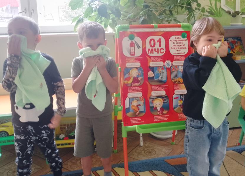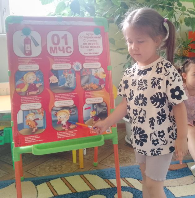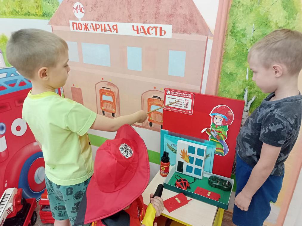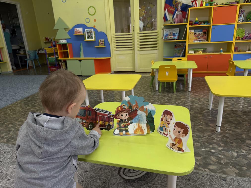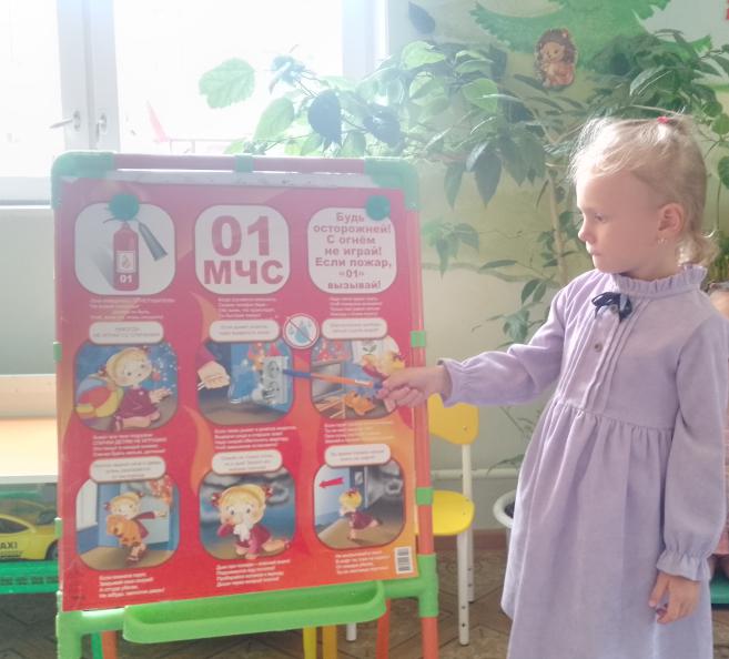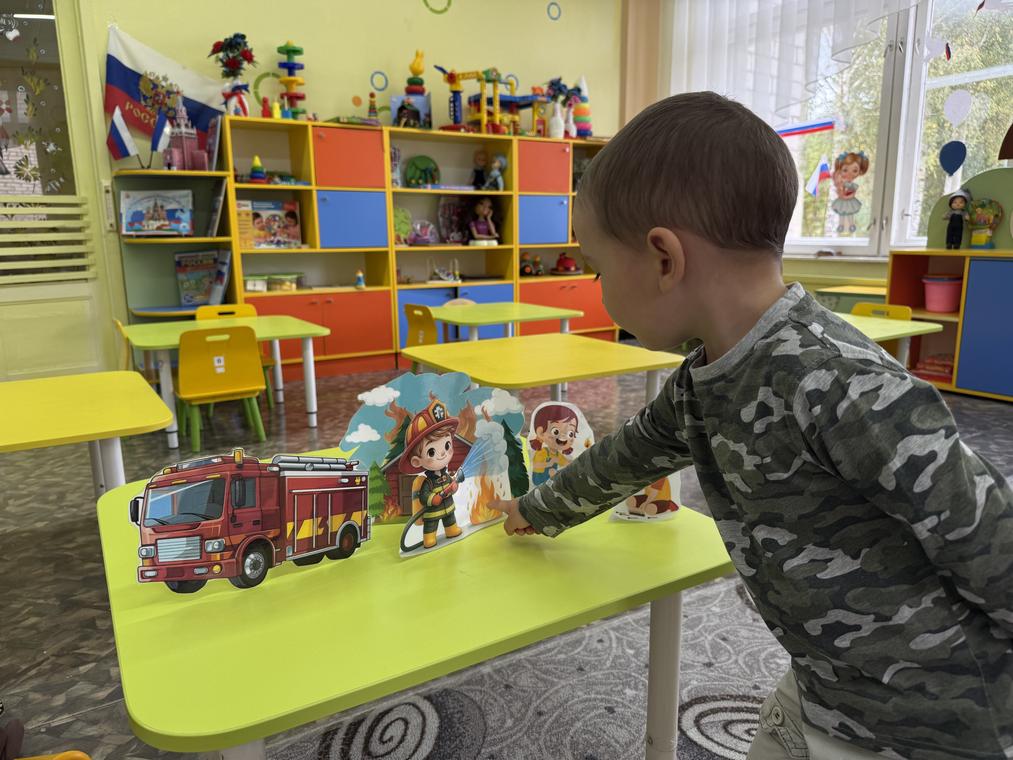 В рамках тематического дня дошколята участвовали в дискуссии «Огонь – друг или враг», рассматривали иллюстрации и рассказывали о правилах пожарной безопасности в отдельно взятой ситуации. Воспитанники закрепили знания о безопасном поведении при взаимодействии с огнем (игровая ситуация «Юные пожарные спешат на помощь»), о работе пожарного, расширили представления об основных причинах возникновения пожара, закрепили умения правильно сообщать о пожаре по телефону, а также навыки действий, чтобы спастись от дыма и т.д. Особое внимание воспитатели обратили на правила безопасного поведения с электроприборами.