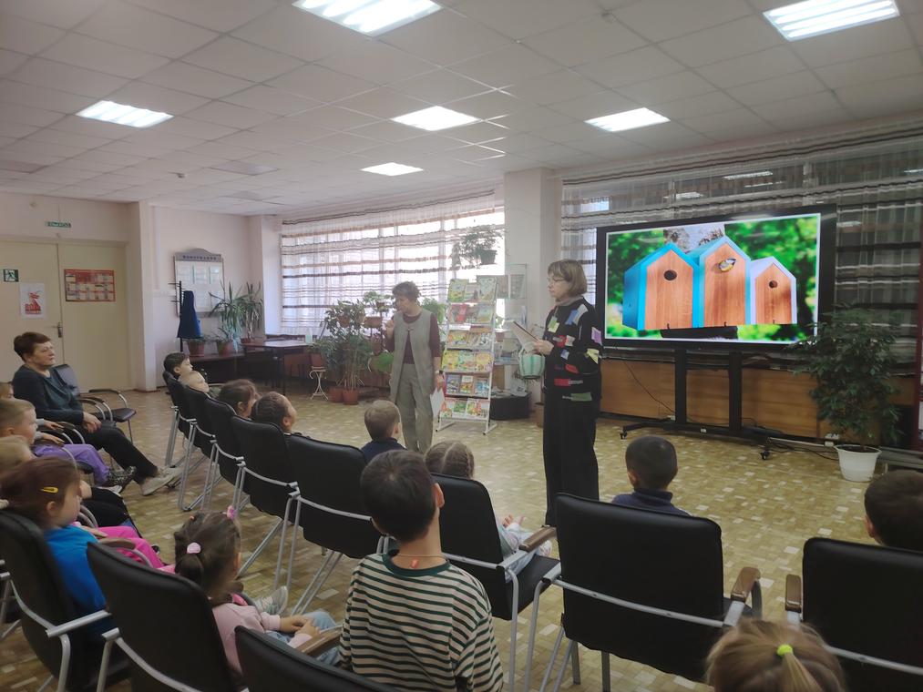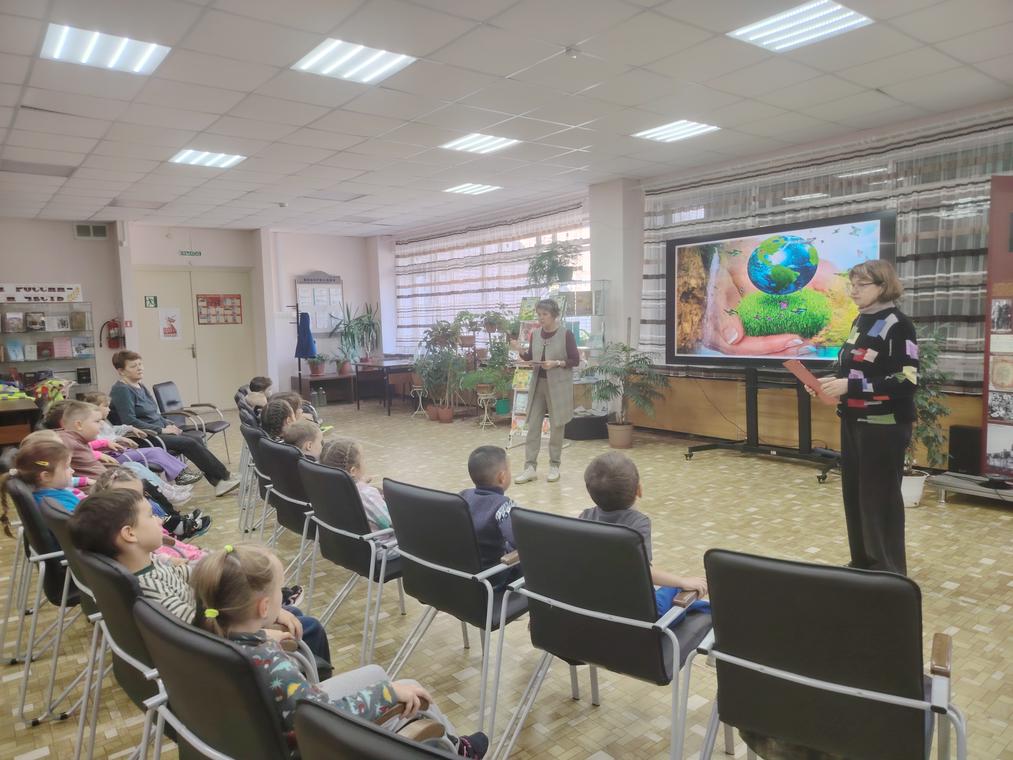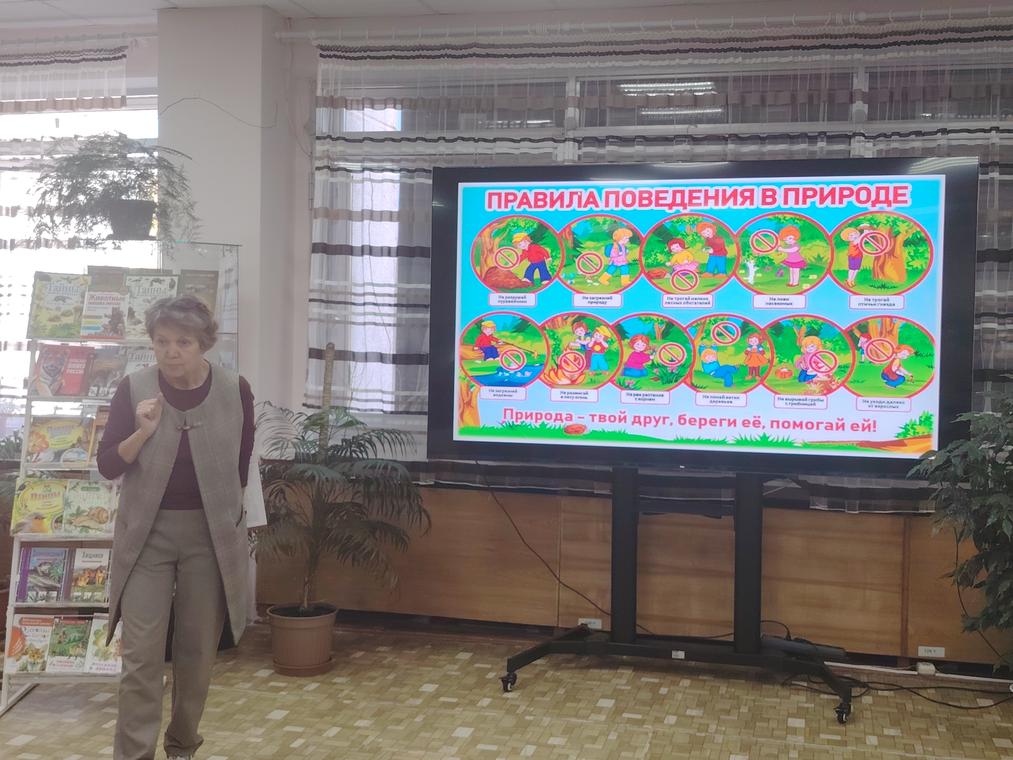 Ребята прослушали небольшую беседу о том, что планета – наш большой общий дом и вести себя в нём надо разумно, осознанно и с любовью, узнали о чудесах, происходящих в природе, а затем приняли участие в экологической игре и вспомнили много интересного из жизни растений и животных. Для ребят была организована выставка «Природы дивный мир». Повторили правила поведения в лесу, рассмотрели и объяснили значение природоохранных знаков.