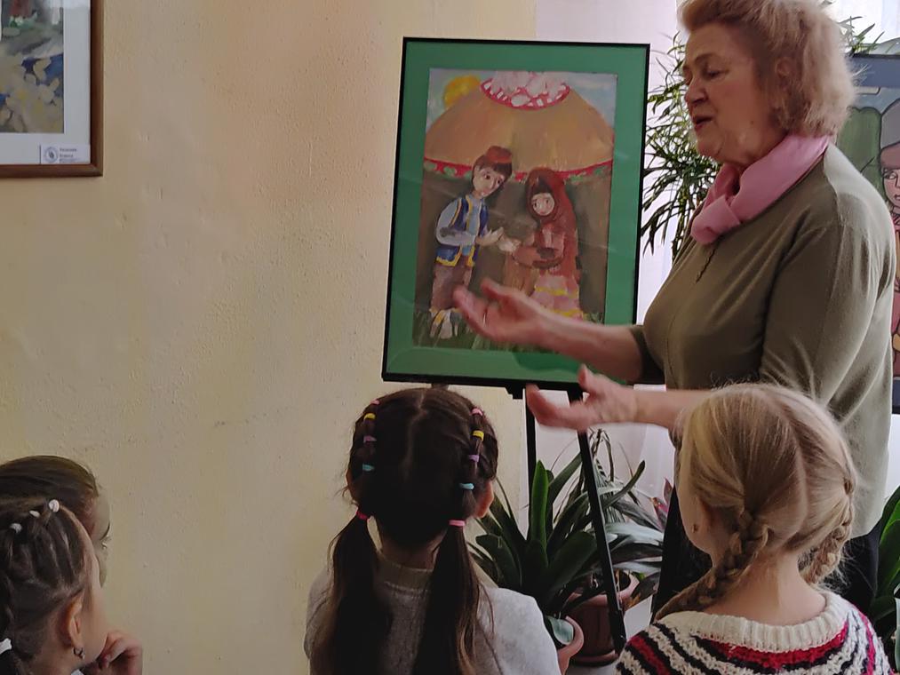 Среди работ дети с восторгом узнавали "Башкирских красавиц", "Батыра на коне", "Колорит Башкирской природы", "Башкирское жилище-юрта".