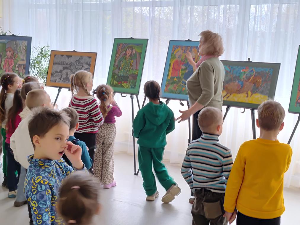 В предверии Дня Республики Башкортостан дети группы "Жар-птица" посетили галерею "пА RТа", где была открыта выставка работ учащихся художественного отделения детской школы.