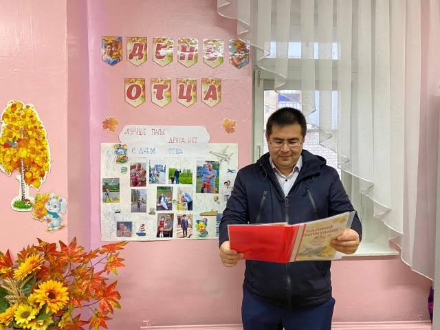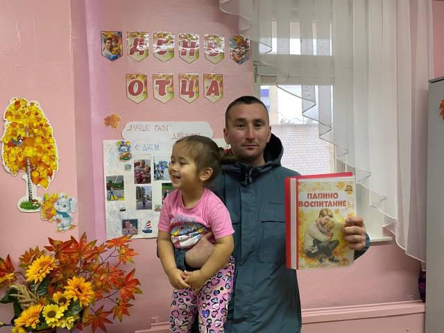 В рамках празднования” Дня отца” во всех группах нашего детского сада прошли мероприятия, посвященные празднику: беседа с детьми о папе; рассматривание иллюстраций с мужскими профессиями (полицейский, доктор, строитель, пожарный); подбор и рассматривание фотографий на тему: «Я и мой папочка»; чтение и заучивание стихов о папах: «Самый лучший!», «Мой папа»; словесная игра «Скажи ласковое слово для папы»; дидактическая игра «Чей папа?» (у всех есть папа и у животных тоже, и детям предлагается найти папу каждому детенышу животных: теленку, жеребенку, гусенку, щенку, котенку, цыпленку и др); пальчиковая гимнастика «Семья»; сюжетно-ролевые игры: «Семья», «Стройка», «На рыбалке»; изготовление подарков для пап.