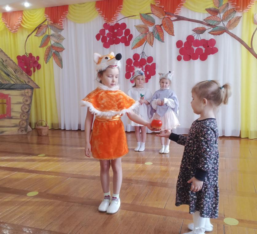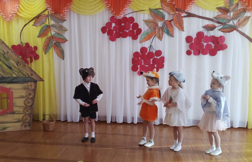 Инсценировка сказки для малышей группы "Солнышко", дошкольниками группы "Красная шапочка" прошла очень интересно и поучительно. В ходе развлечения малыши помогали лесным друзьям совершать добрые, безвозмездные поступки. А веселые, дружные игры и танцы создали праздничную атмосферу - для героев сказки и ребят младшего возраста.