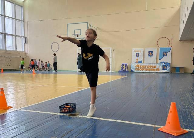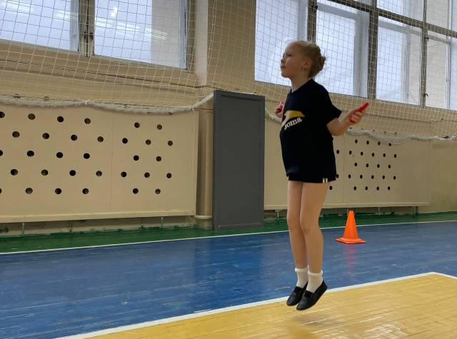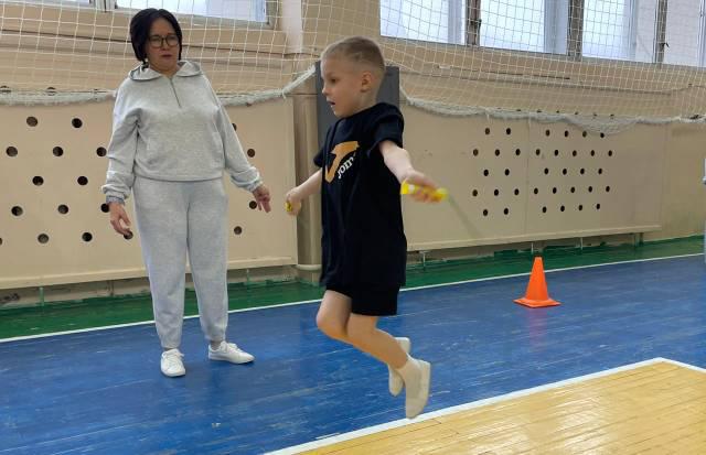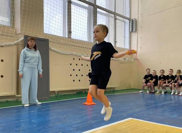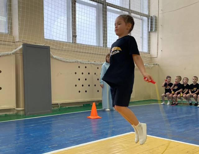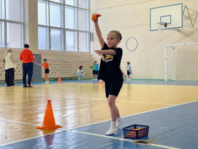 Юные физкультурники прошли испытания в "Спортивных аттракционах", выполнив метание мешочка 200 гр., прыжки на скакалке и отбивание мяча от пола.
