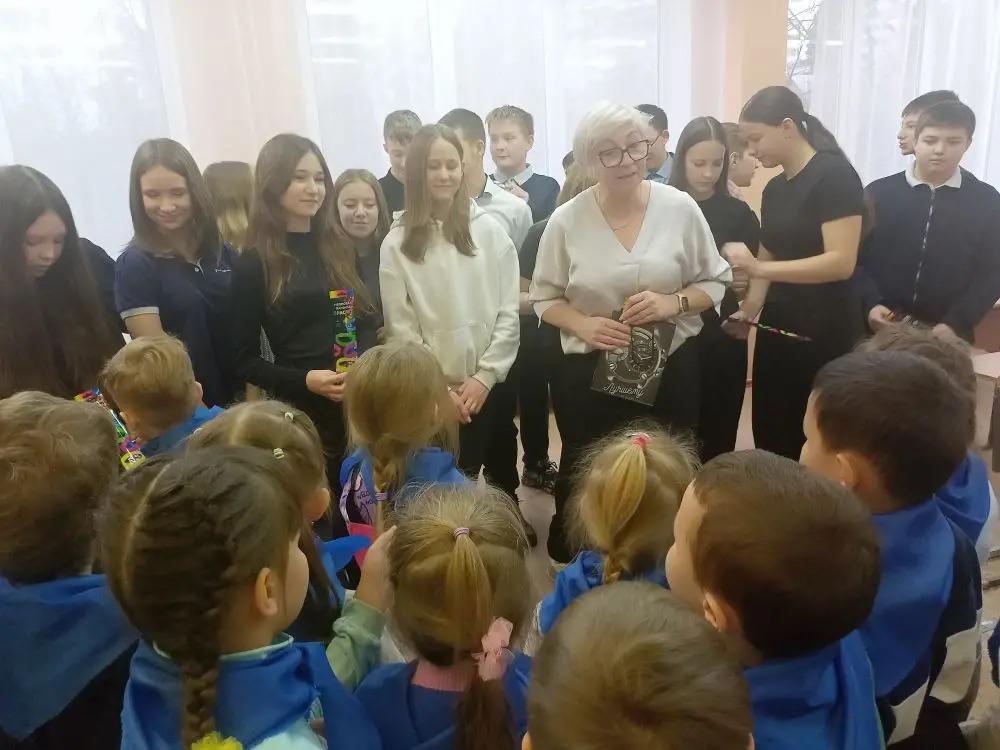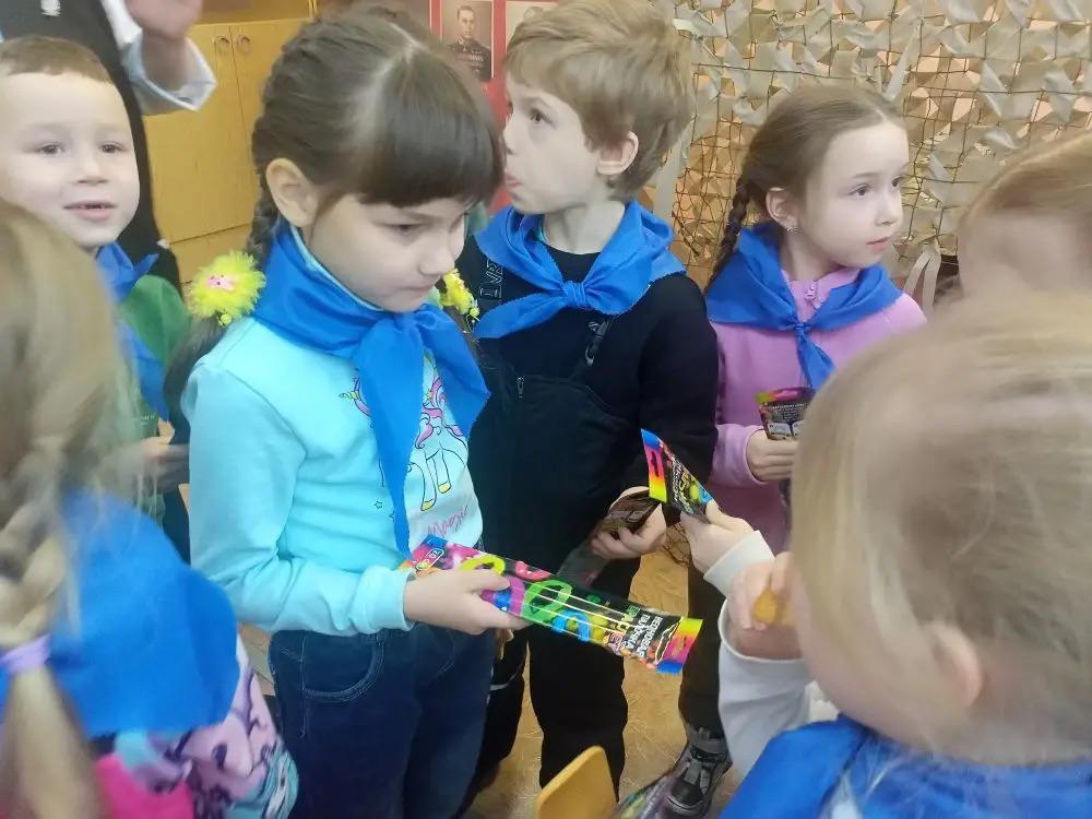 В рамках программы «Орлята - дошколята», по направлению «Орленок-доброволец» была проведена детьми подготовительной группы «Красная шапочка» экскурсия в СОШ №3. Целью экскурсии было не просто знакомство со школьной жизнью, а встреча участниками волонтерского движения «Добро.Центр». Экскурсия началась с краткого и понятного рассказа о том, кто такие волонтеры. Руководитель волонтерского движения «Добро.Центр». Гаврилова Инна Михайловна объяснила простыми словами: волонтер - это человек, который помогает другим просто так, от чистого сердца, не ожидая наград. Ребята из 7«Б» класса (волонтеры) показали детям подготовительной группы, как плетутся маскировочные сети. Итогом экскурсии стало общее фото. Каждый дошколенок унес с собой не только массу впечатлений, но и маленький подарочек (светящийся браслет) подаренный волонтером.