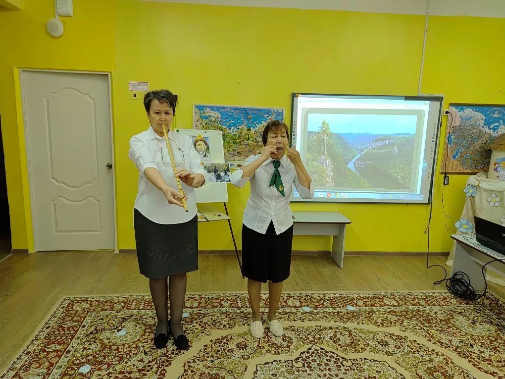 Детей ознакомили с башкирскими музыкальными инструментами кубыз, курай, рассматривали настенную газету «Родной язык», говорили пословицы и поговорки о родном языке
