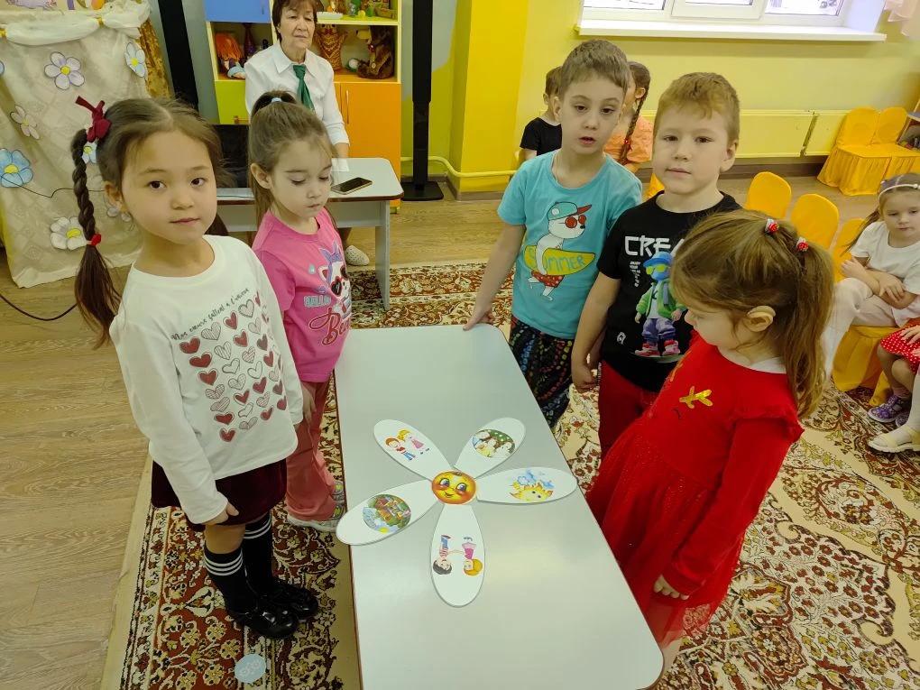 В начале занятия с детьми провели эмоциональную рефлексию, составили «Цветок приветствия» с пожеланиями «Здравствуйте!», «С добрым утром!», «Добрый день!», «Удачного дня!», «Хорошего настроения!».