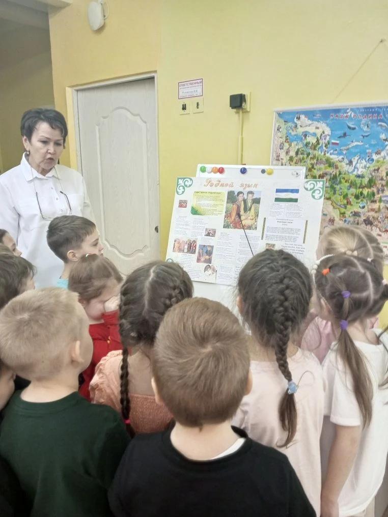 Дети послушали стихотворение «Башкорттарым, укыу кэрэк!» на башкирском и русском языках.