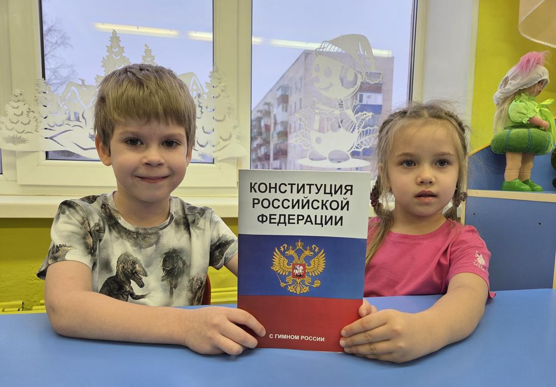 Воспитанники нашего детского сада "Сказка", конечно ещё малы для осознания своих прав и обязанностей как граждан страны, однако уже в дошкольном возрасте закладываются основы патриотизма, осознания себя частью государства, развивается познавательный интерес к событиям, происходящим вокруг. В старшей и подготовительных группах нашего детского сада прошли познавательные беседы на тему: "Поговорим о Конституции".