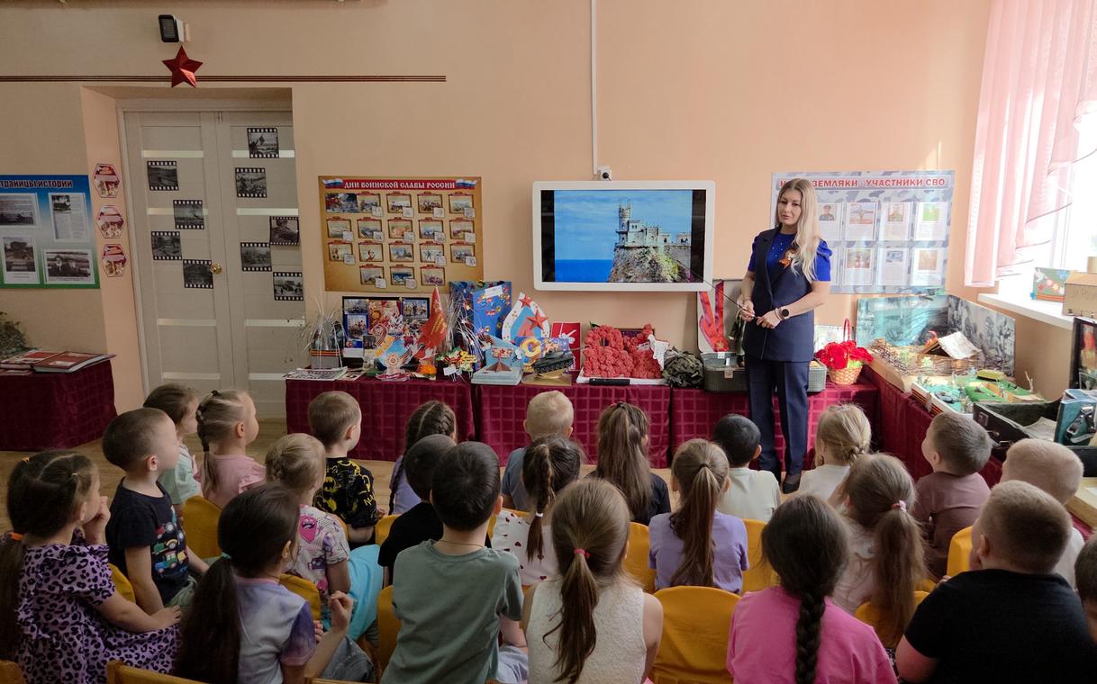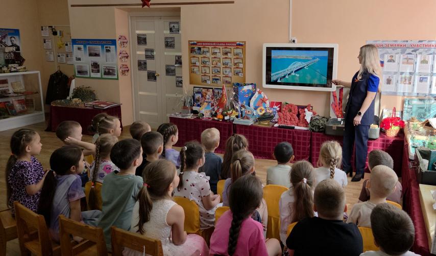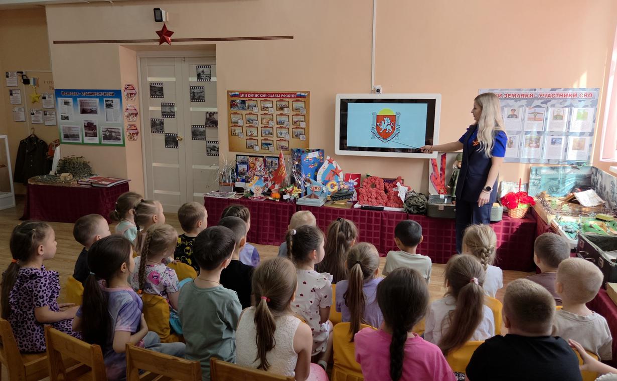 Детям было представлено видео «Крым и Россия. Мы вместе». Они с интересом слушали рассказ экскурсовода об истории Крыма, о событиях, произошедших в марте 2014 года, о достопримечательностях и природе полуострова.
